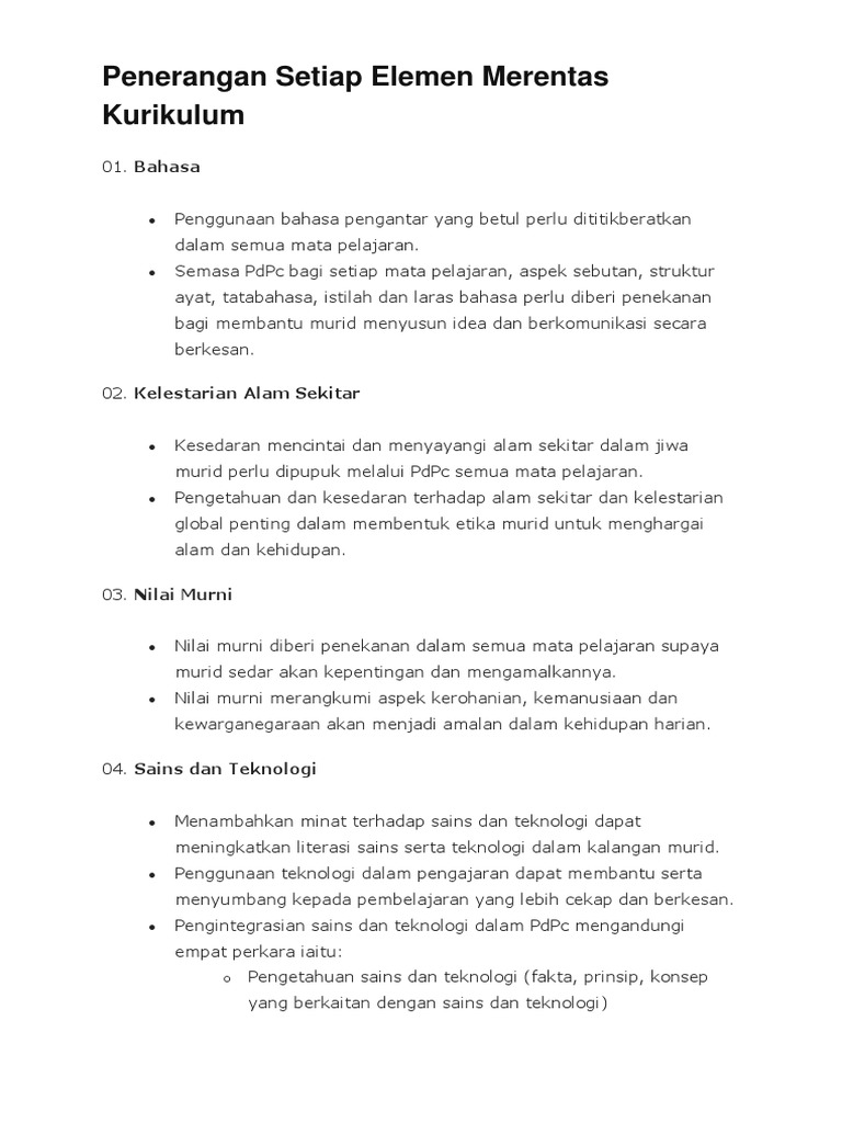 Penerangan Setiap Elemen Merentas Kurikulum Pdf